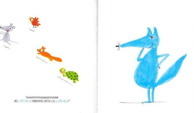 Ma ecco che Topino scoppia in una fragorosa risata svelando agli amici di essersi divertito a prenderli un po’ in giro! Ma che succede se mentre gli amici sono lì che se la ridono, arriva davvero un lupo blu? Ma allora esistono davvero i lupi blu? O anche il lupo, preso dallo spirito carnevalesco, ha ben pensato di travestirsi per fare a sua volta un bello scherzetto a tutti? E se lo scherzo poi non finisse lì?