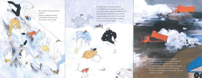 Ogni stagione sembra regalarci meraviglie e stupore che troppo presto lasciano posto a malumori e disappunti… la soluzione però è a portata di mano: un po’ d’asfalto e tutto si risolve! Un albo illustrato magnifico e profondo che parla da sé e non necessita di nulla di più da parte nostra.
