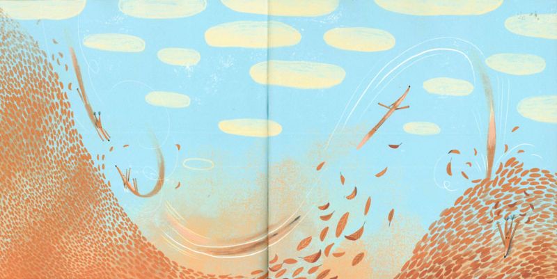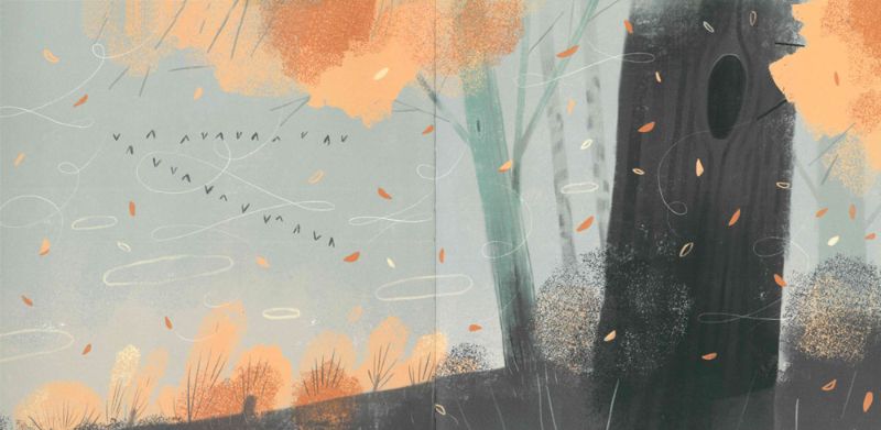 E poi si lasciano cadere per mescolarsi con foglie appena cadute in voli mozzafiato e onde che trasportano le piccole volpi fino ai confini del bosco.