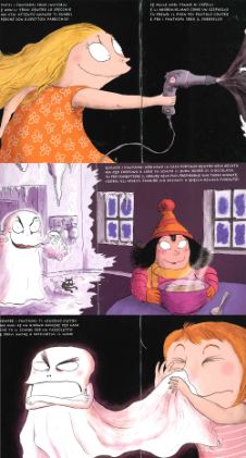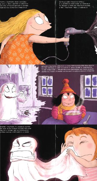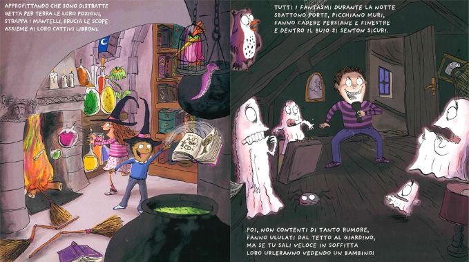 Il problema streghe sembra risolto ma… i fantasmi? Di quei lenzuolini birichini che si aggirano per le case a fare dispetti, fluttuando per tutto il salotto, passando attraverso i muri, non ci siamo certo scordati! La notte di Halloween dovrete affrontare i fantasmi più bizzarri e spaventosi mai visti. Ma voi siete bambini coraggiosi, vero? Dopotutto noi bibliotecari, seppur esperti di magia, non siamo certo degli Acchiappafantasmi! Scherzetto! Abbiamo pensato a tutto noi, perché oggi vi proponiamo un secondo libro! Il “Manuale antifantasmi” vi darà delle dritte su come affrontare queste birbe di spiritelli. Sapete, a loro fa proprio schifo il profumo della cioccolata e allora mettetegliela sotto al naso, o spazzateli voi col getto del vostro phon e, dato che voi bimbi avete sempre il moccio al naso, perché non soffiarvelo sui loro bianchi vestitini?!
