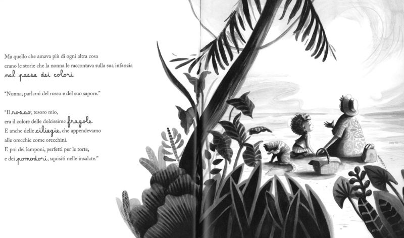 A Nina piaceva ascoltare le storie della nonna che le raccontava di quando era piccola e il mondo a colori. Raccontava di come le rosse ciliegie non solo fossero deliziose ma anche perfette come orecchini. E poi che le patatine fritte erano gialle. Strabiliante! Era proprio difficile credere a tutte queste cose meravigliose.
