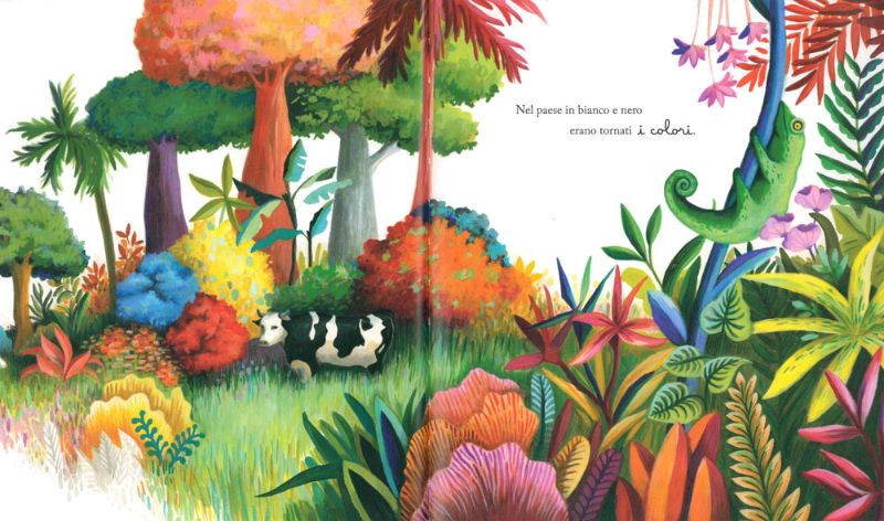“C’era una volta un paese in bianco e nero. Un paese che, un tempo, era stato di tutti i colori.” Un giorno infatti un ciclone se li era portati via, e da allora nulla era stato più come prima. Tutto era bianco, nero e grigio… la frutta era insipida e i fiori mogi mogi.