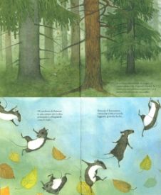 Il piccolo topino cerca di imitarle saltando e rimbalzando come in un ballo, volteggiando proprio come stanno facendo le foglie. E così inizia a sentirsi sempre più leggero e spensierato quando, viene interrotto da qualcuno: “ma come balli bene!”. Chi è che parla? Si tratta della lepre che, guardandolo ballare, ne rimane incantata.