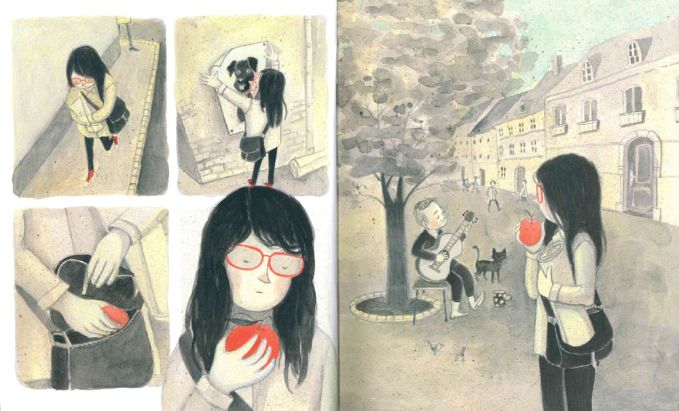 Mentre una ragazza appende dei volantini per ritrovare il suo cane smarrito, decide di compiere un gesto gentile: regalare la sua mela ad un artista di strada che sta suonando la chitarra.