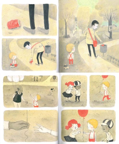 Un bambino a sua volta rimane colpito dal bel gesto compiuto dal passante e, vedendo piangere una bimba che aveva perso il palloncino, trova il modo di farle tornare il sorriso.