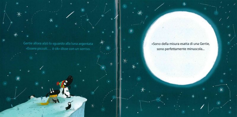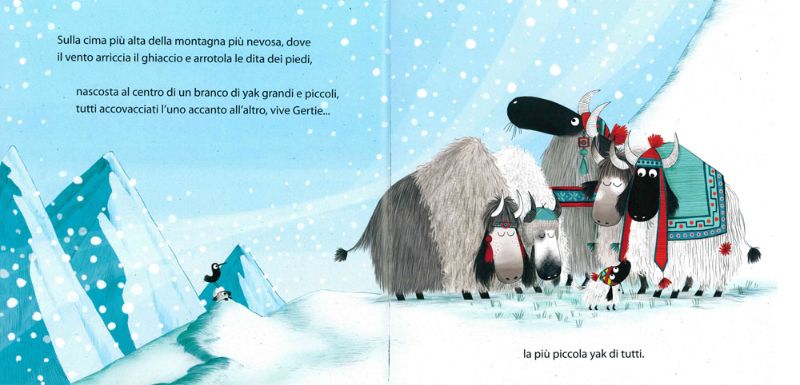 Pensate un po’, solo Gertie è in grado di salvare un piccolo piccolissimo yak! Dunque, cari piccoli lettori, questa eroina ci insegna una cosa molto importante: ci sono cose che solo i più piccoli possono fare, e che non c’è alcuna fretta di diventare grandi.