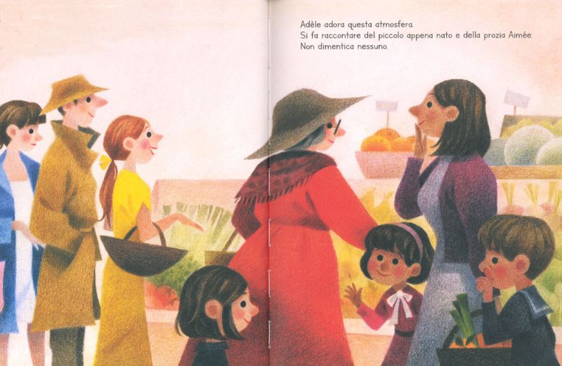 Adèle è una giovane donna solare che si occupa con tanto amore del suo caffè. E in effetti le cure amorevoli e l’attenzione anche verso i più piccoli dettagli, rendono il caffè di Adèle un mondo vivace, capace di vestirsi anche con gli abiti di un cinema o con quelli di un mercato di frutta e verdura, è luogo di chiacchiere e di ritrovi, di festa.