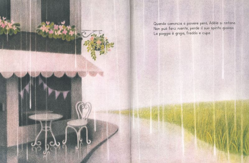 I clienti affezionati amano andare al “Grembiule a pois” e Adèle vuole bene ai suoi clienti. Peccato che la porta del caffè rimanga chiusa quando fuori il tempo è brutto perché non c’è nulla che Adèle non sopporti più delle giornate di pioggia: se ne sta rintanata a letto con il naso sotto le coperte e guai a dirle di uscire!