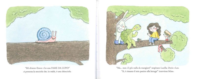 In una bella giornata di sole Lucilla cerca il posticino ideale per fare merenda e, dopo essersi arrampicata su un albero, trova un comodo ramo con una vista meravigliosa.