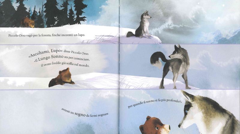 Quando Grande Orso gli dice che devono prepararsi per il Lungo Sonno, Piccolo Orso è preoccupato “farò dei sogni?” domanda.