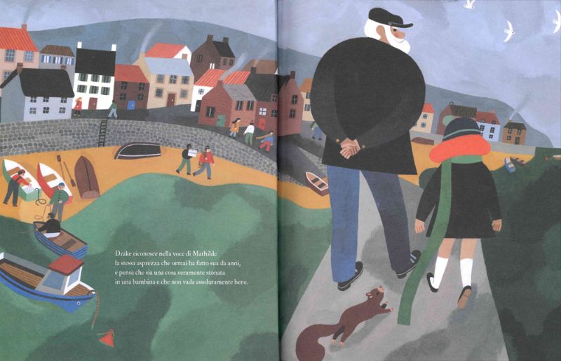 L’altra protagonista della nostra storia, insieme al burbero marinaio dal cuore buono, è Mathilde, una bambina il cui papà si è imbarcato da poco, e che si accinge a passare il suo primo Natale senza di lui. Riuscirà la tristezza della bambina a smuovere l’animo del marinaio?