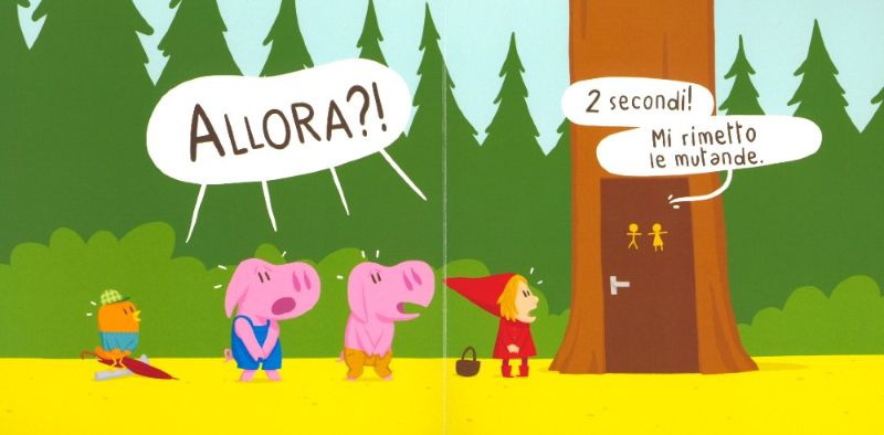 “Occupato”, edita da Babalibri, è l’ultima novità firmata Matthieu Maudet, che da sempre ci sorprende con le sue geniali storie illustrate. È Cappuccetto Rosso ad aprire la storia e la vediamo diretta, di fretta di fretta, verso il bagno perché “accipicchia, deve fare la pipì” ma... lo trova occupato!