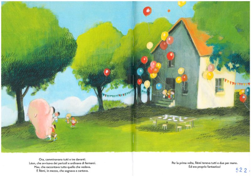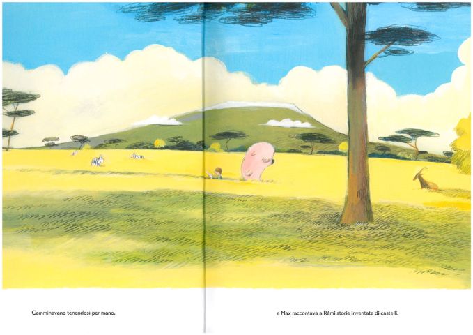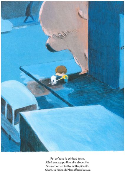 Quando però un’auto schizza Rémi, il coniglietto si sente improvvisamente molto piccolo e non all’altezza del nuovo compito ma, grazie al suo amico Max che gli afferra subito la mano mentre inizia a raccontargli una meravigliosa storia del cavaliere tutto zuppo, Rèmi riacquista fiducia e procede a passo spedito…
