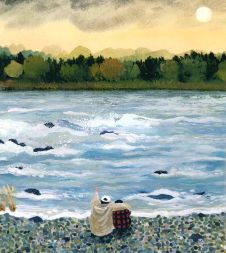 E poi ecco un posto tranquillo: il suo papà lo va a prendere a scuola e per far passare la rabbia e le lacrime della sua “giornata di difficoltà di parole”, lo porta a passeggiare lungo il corso del fiume.
