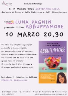 In occasione della Settimana Lilla dedicata ai Disturbi della Nutrizione e dell'Alimentazione, LUNA PAGNIN sarà in biblioteca per presentare il suo libro "Abbuffamore. Diario di un disturbo alimentare".