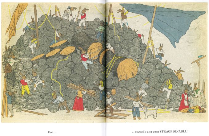 Gli abitanti, attirati dall’allettante profumino di pane caldo appena sfornato, iniziano a formare ogni giorno lunghe code per accaparrarsi una bella pagnotta e il leprotto in men che non si dica ha a disposizione una gran quantità di pietre per poter iniziare la costruzione della sua torre! Già, la sua idea era proprio quella di innalzare una torre altissima per riuscire a vedere al di sopra dei fitti alberi! Riuscirà a portarla a termine?