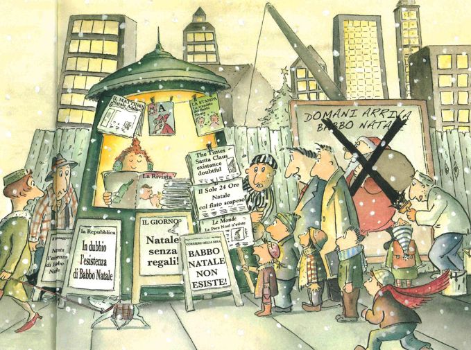 Peccato che a Natale manchi poco e quest’anno i Babbi sono alle prese con una situazione a dir poco bizzarra! Il loro cuoco infatti su un quotidiano legge la notizia che annuncia che “Babbo Natale non esiste!”.