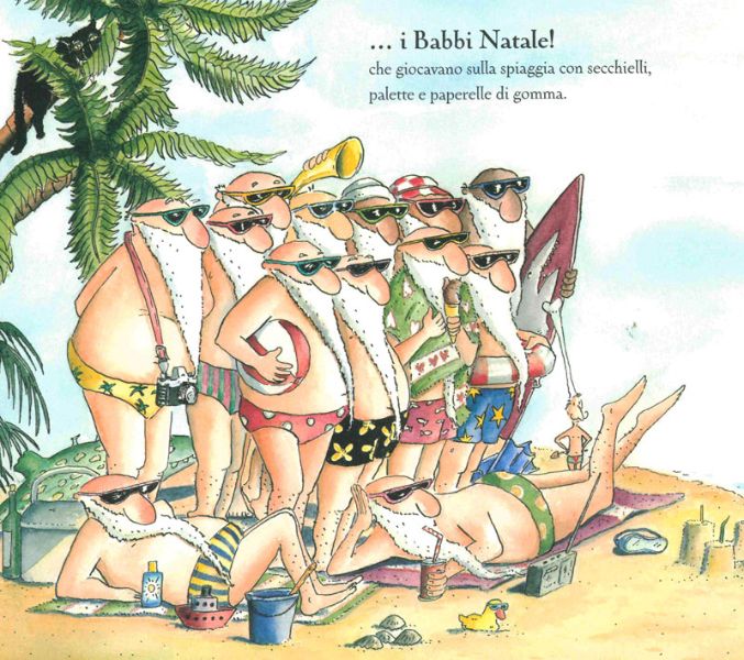 I nostri simpatici Babbi decidono allora di appendere i loro abiti rossi e di indossare costumi e occhiali da sole per concedersi una bella vacanza in una soleggiata spiaggia dei Mari del Sud! Rupert, un ragazzino che potrebbe essere benissimo uno dei nostri bimbi, proprio non ci sta!