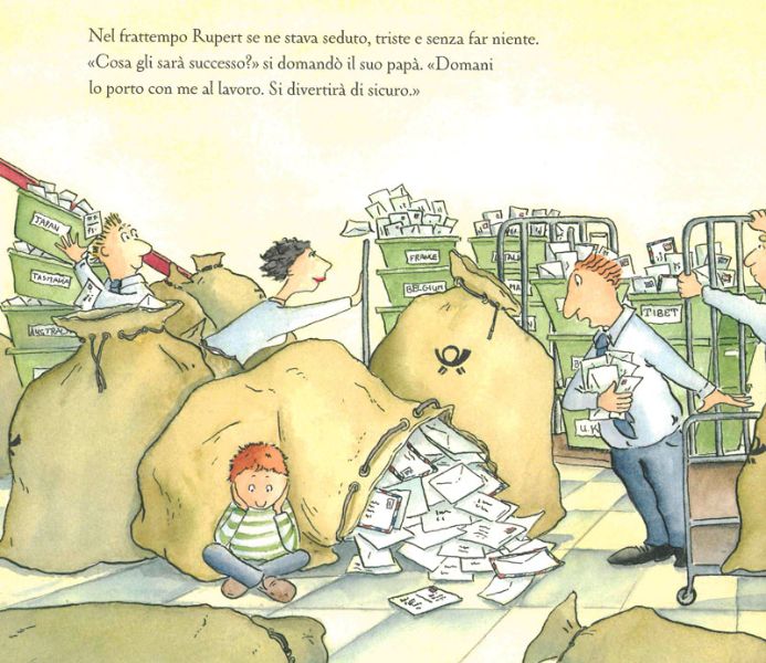Lui non ha mai messo in dubbio l’esistenza di Babbo Natale e così parte alla ricerca del suo “idolo”! Per Rupert sarà l’inizio di una meravigliosa avventura, al sapore di renne, slitta, campanelle, regali e tanti… Babbi! Da grande furbetto quale è, una volta convinti i Babbi a riprendere il loro posto visto l’avvicinarsi della magica notte, propone al “suo Babbo di quartiere” di lasciare sotto l’albero, oltre al regalino, un piccolo pensierino: “Da dove arrivano i regali se io non esisto? Cari saluti da Babbo Natale”!