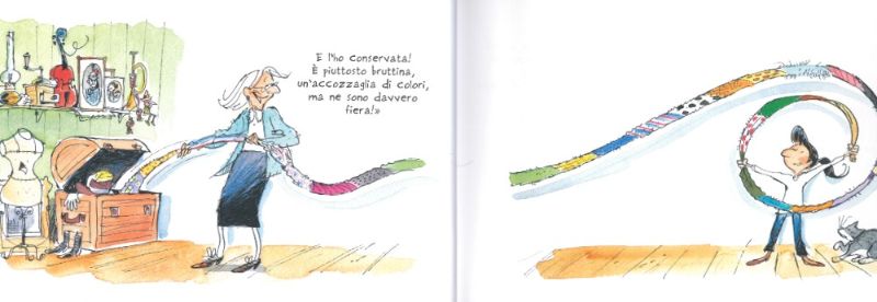 Nonna Lea, così si chiama, una mattina regala alla sua nipotina Madeleine la primissima sciarpa che aveva realizzato ancora giovane, quella di cui è più orgogliosa perché le ricorda la fatica che aveva fatto a comporla e perché in essa sono racchiusi tanti ricordi: si tratta infatti di una sciarpa coloratissima fatta con fili provenienti da maglioni di parenti e amici, ogni colore è un racconto di un episodio caro alla nonna.
