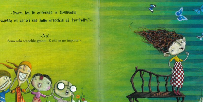 Chiunque sia mai stato bersaglio di frecciatine malevole sul proprio aspetto fisico o sul proprio carattere si sentirà immediatamente compreso sfogliando le pagine di questo bellissimo albo illustrato “Orecchie di farfalla”.