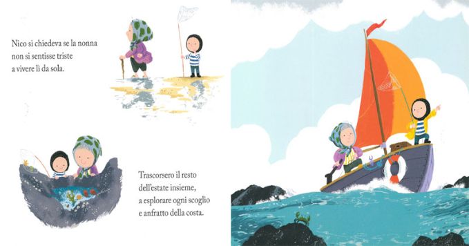 Non vedendolo rincasare, la nonnetta non tarderà a navigare la sua barca a vela alla ricerca del suo amato nipotino e finalmente, da quel giorno, non perderà occasione di dedicarsi a lui a tempo pieno, riscoprendo la magia e l’incanto di sentirsi anche lei bambina!