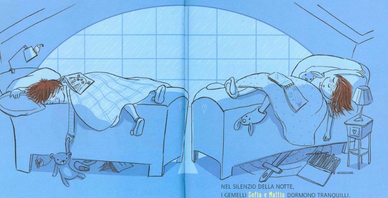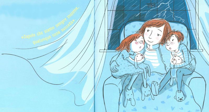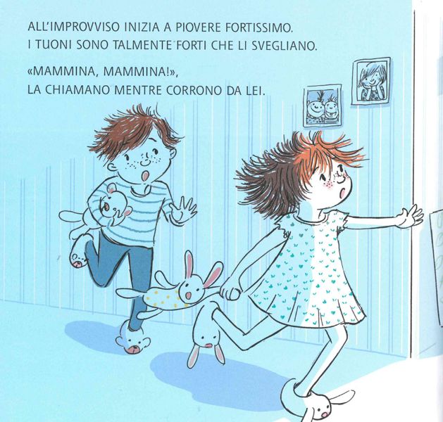 Una notte, i gemellini Sofia e Mattia, si svegliano spaventati dal temporale e corrono a rifugiarsi tra le braccia della mamma.