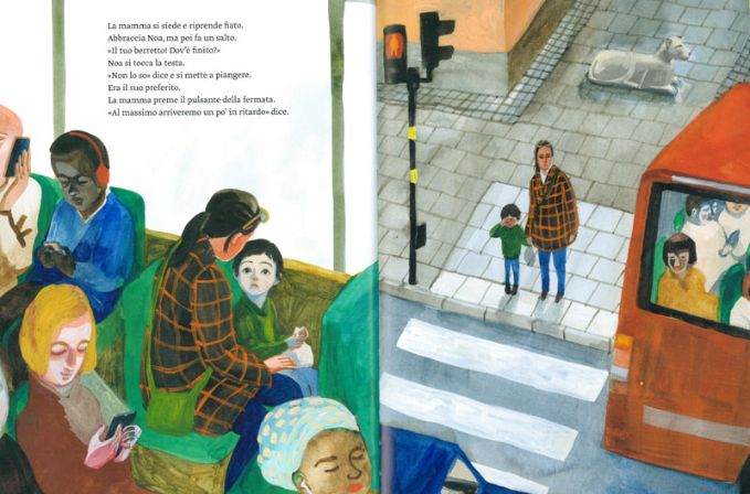 Inutile dire che ben presto da quel bus Noa e la mamma devono scendere perché il berretto di Noa non è più con lui! Per dindirindina, non se ne può più, che faticaccia!