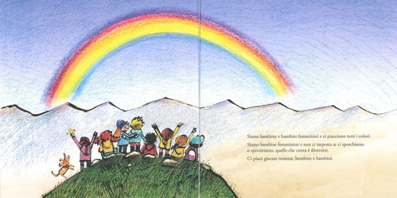 Alle bambine e ai bambini femministi non importa di sporcarsi o spettinarsi, perché per loro l’importante è divertirsi e giocare insieme! Non esistono né mestieri né tagli di capelli da maschio o da femmina. I bambini e le bambine vogliono scegliersi i loro vestiti e i loro giocattoli, e non si vergognano di esprimere le proprie emozioni.