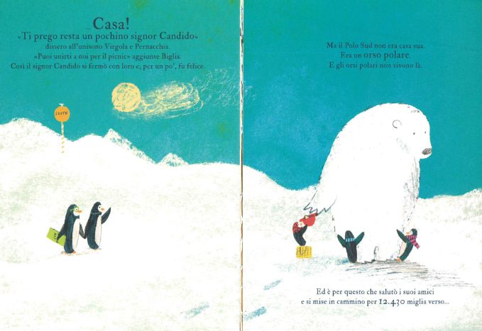 Con l’aiuto del loro nuovo amico, famiglia di pinguini riuscirà a tornare al Polo Sud dove forse riusciranno finalmente a fare il loro tanto atteso pic-nic… oppure qualche nuova avventura li attenderà? Per scoprirlo vi basta correre in biblioteca a prendere il libro, ai panini ci abbiamo già pensato noi! Buona lettura amici, noi vi aspettiamo come sempre la prossima settimana.