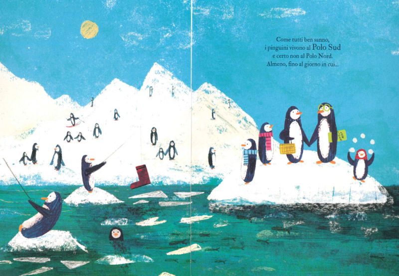 Con il libro di oggi, “Poli opposti”, vogliamo portarvi con noi a fare un viaggio dall’altra parte del globo insieme a degli amici speciali: la famiglia Sardina. Chi è? Si tratta di un’allegra famigliola di pinguini che vive, come tutti ben sanno, al Polo Sud e non certo al Polo Nord! Giusto?