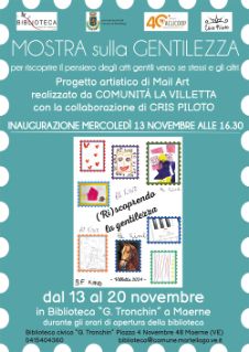 Se passate in biblioteca in questi giorni non perdetevi la bellissima mostra sul tema della gentilezza, un progetto artistico di mail art che vi farà battere il cuore e che, proprio come questo libro, potrebbe far nascere in voi il desiderio di compiere tanti gesti gentili!