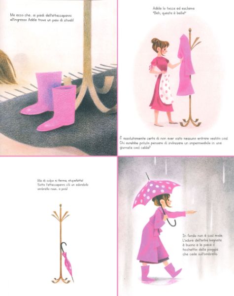 Quando però Adèle capisce che non appartengono a nessuno, prova ad indossarle scoprendo, così, che le calzano a pennello… possibile che si tratti di regali destinati proprio a lei? Ma chi può essere il misterioso amico che le invia questi oggetti? Naturalmente non vi sveleremo il nome dell’innamorato che con delicatezza e premura sta corteggiando la nostra protagonista ma vi diciamo solo che da ora le giornate di pioggia non saranno più un problema per lei.
