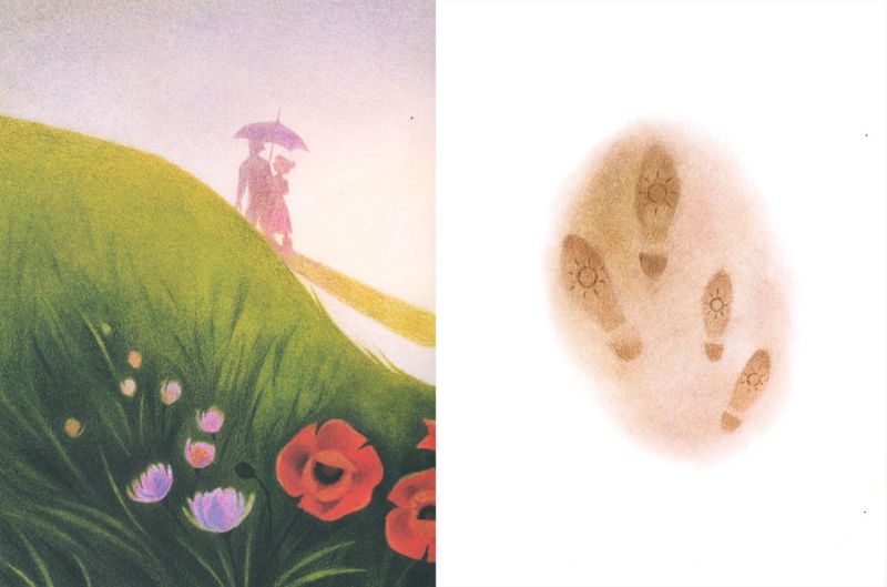 Adèle scoprirà infatti che “l’odore dell’erba bagnata è buona e [che] le piace il ticchettio della pioggia che cade sull’ombrello”. Il finale del libro non poteva donarci immagine più dolce di questa: Adèle e il suo amato che continuano a camminare abbracciati sotto l’ombrello anche ad acquazzone terminato, lasciando nella terra bagnata le impronte di quattro piccoli soli radiosi.