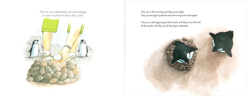 Ma, a differenza degli altri, Roy e Silo non hanno un ovetto da covare, perciò sono molto tristi. Un bel giorno però, il guardiano dello zoo trova un ovetto abbandonato e lo mette nel loro nido.