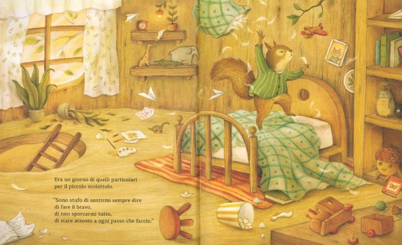Un giorno piccolo scoiattolo si stufa di fare il buono, così comincia a distruggere tutto e a fare il cattivo. La sua mamma, preoccupata, gli chiede perché si comporta così. “Perché sono un mostro e sono solo.” risponde lo scoiattolino.