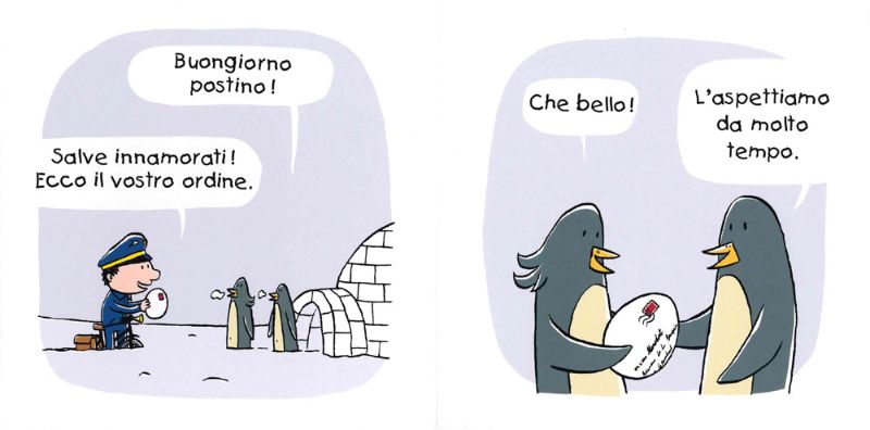 Avete capito di che libricino si tratta? È “Buongiorno Postino” che, in occasione della Giornata Mondiale dell’Adozione del 9 novembre, ricorda a tutti una cosa fondamentale: non ha importanza da dove vengono i cuccioli o se sono pinguini come mamma e papà, l’importante è volersi bene ed essere felici.