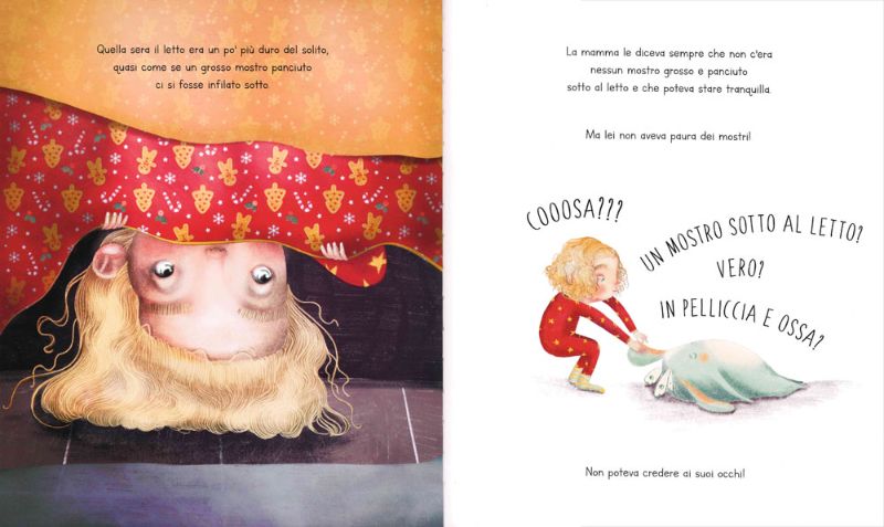 È davvero impaziente che arrivi mattina, e va addirittura a letto presto! Sembra andare tutto bene, no? Non proprio. A dirla tutta, c’è qualcosa di strano nella cameretta di Iris… il letto sembra un po’ più duro del solito, quasi come se un mostro ci si fosse infilato sotto.