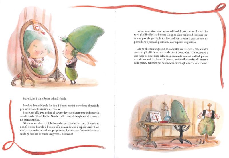 Al contrario di Iris, in “I cinque buoni motivi di Harold per odiare il Natale”, Harold è un elfo goffo e pasticcione che odia sempre più il Natale. Sarà la sua allergia alla cioccolata (ma come?? Un elfo allergico?), saranno tutti i guai che combina, Harold si ritrova a lavorare da solo.