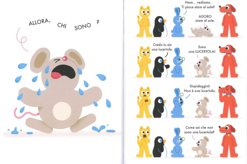 Bimbi, per caso a voi viene in mente qualche altra domanda da fare al piccoletto? Questo simpaticissimo libretto ci accompagna in una divertente storia alla scoperta di noi stessi, attraverso spirito di osservazione e, perché no, un po’ di ironia! Piccoli amici, vi va di fare una capatina in biblioteca a scoprire che animale è il nostro buffo protagonista?