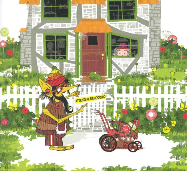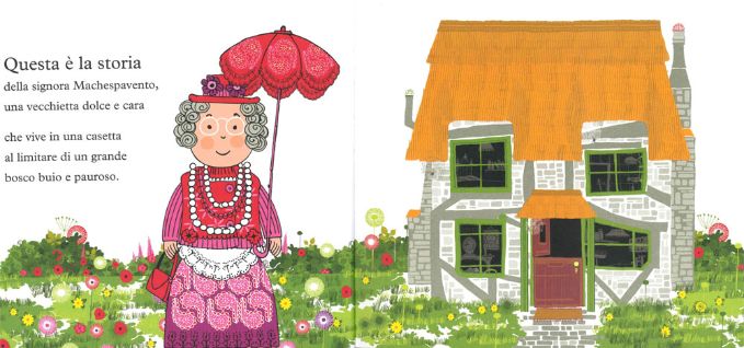 Ecco allora che la signora Machespavento, una vecchietta che abita tutta sola in una casetta al limitare del bosco, per far fronte a quelle orribili creature che spuntano minacciose dal bosco buio e pauroso, decide di far fare da guardia al cancello della propria casa al suo ranocchio di compagnia.