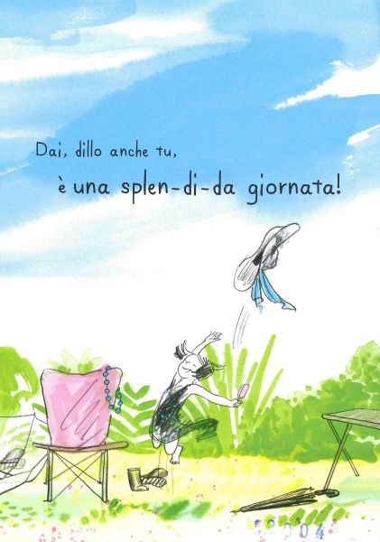 Un albo illustrato entusiasmante, un inno alla felicità, alla spensieratezza dei nostri bambini che con la loro gioia riescono a far diventare radiose anche le giornate più nere, al ritmo di “una splen-di-da giornata!”
