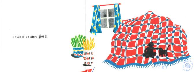 Ecco che una sedia si trasforma in una giraffa, il divano in qualcosa di veramente pesante, il micio di casa in un animale feroce, l’armadio in un razzo pronto al lancio… e tocco finale, un grande plaid in una tenda da accampamento!