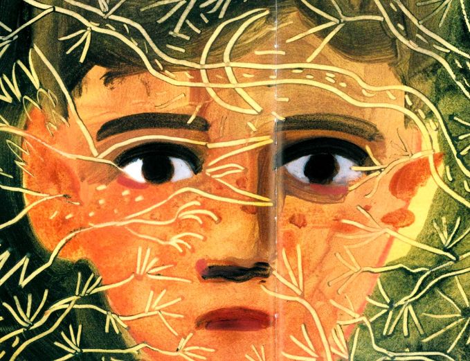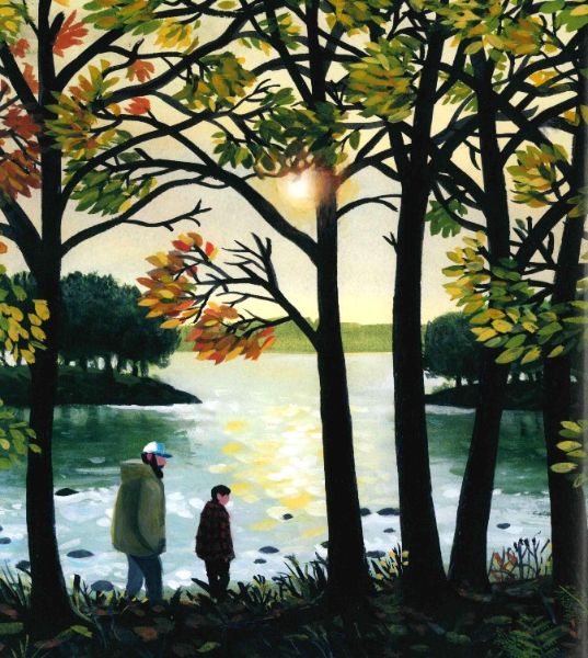 E poi ecco un posto tranquillo: il suo papà lo va a prendere a scuola e per far passare la rabbia e le lacrime della sua “giornata di difficoltà di parole”, lo porta a passeggiare lungo il corso del fiume.