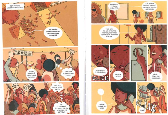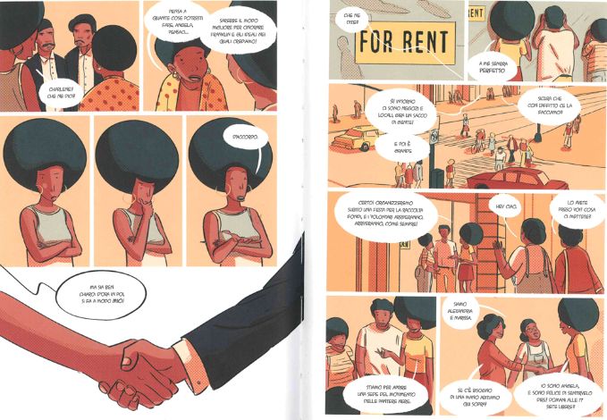 Mariapaola Pesce e Mel Zohar con questo fumetto ci portano negli Stati Uniti degli anni ’70 a conoscere Angela Davis, una delle figure più carismatiche del movimento americano per la difesa e la promozione dei diritti civili.