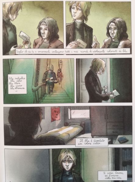Vi è mai capitato che lo sguardo di una persona diventi una scossa in grado di far tremare le fondamenta di una vita banale, un’esplosione di colore in un’esistenza grigia? È proprio quello che succede a Clementine: in un pomeriggio come tanti altri, una testa dai capelli tinti di blu e un paio di occhi chiari invadono i suoi sogni e le sue fantasie. Eppure questo non è solo un racconto d’amore, ma è anche una storia di vergogna e di negazione, di rabbia e di insicurezza: il nome dell’ossessione di Clementine è Emma e vivere l’omosessualità in un mondo pieno di pregiudizi può causare fratture emotive insanabili, deviando in modo irreparabile il corso di un’esistenza.