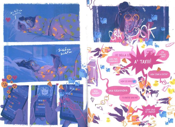 Trigger warning: questo fumetto tratta di violenza di genere, di abusi sessuali, autolesionismo, body-shaming e linguaggio offensivo, potrebbe dunque non essere adatto a tuttə.