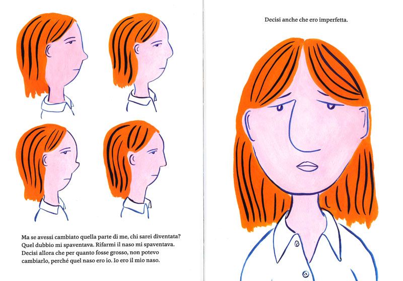 La storia, accompagnata dai colori forti delle immagini, è una profonda riflessione su come ci si sente nella propria pelle, su quanto conti lo sguardo degli altri, sulle imperfezioni che ci sembrano condizionare la vita, sull’accettarsi prima ancora di essere accettati.