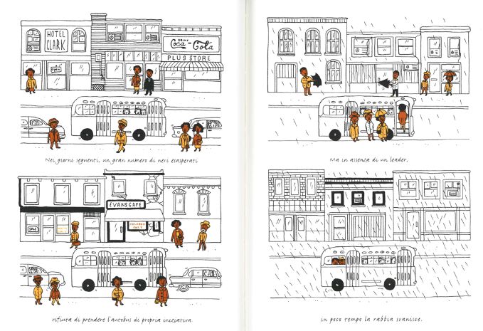 Quella ragazzina coraggiosa si chiama Claudette Colvin e questo fumetto parla di lei e di come questo gesto abbia portato alle prime proteste per i diritti civili degli afroamericani.
