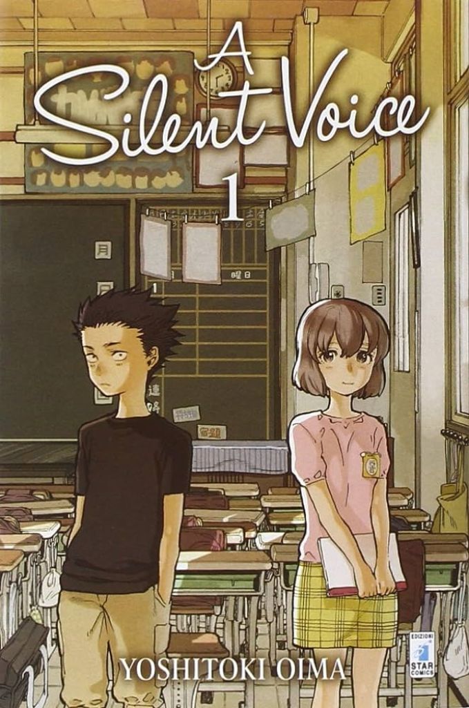 Titolo originale “Koe no katachi”, letteralmente “La forma della voce”, si tratta di una serie di manga che in soli sette volumi parla delle debolezze umane, del bullismo, della salute mentale e della disabilità, di come le persone possano cambiare, nonostante il passato non si possa cancellare, e di come alcune rimangano fondamentalmente le stesse. Apparentemente è una storia con uno sviluppo romantico scontato, ma c’è molto da riflettere sui sentimenti dei due giovani protagonisti.
